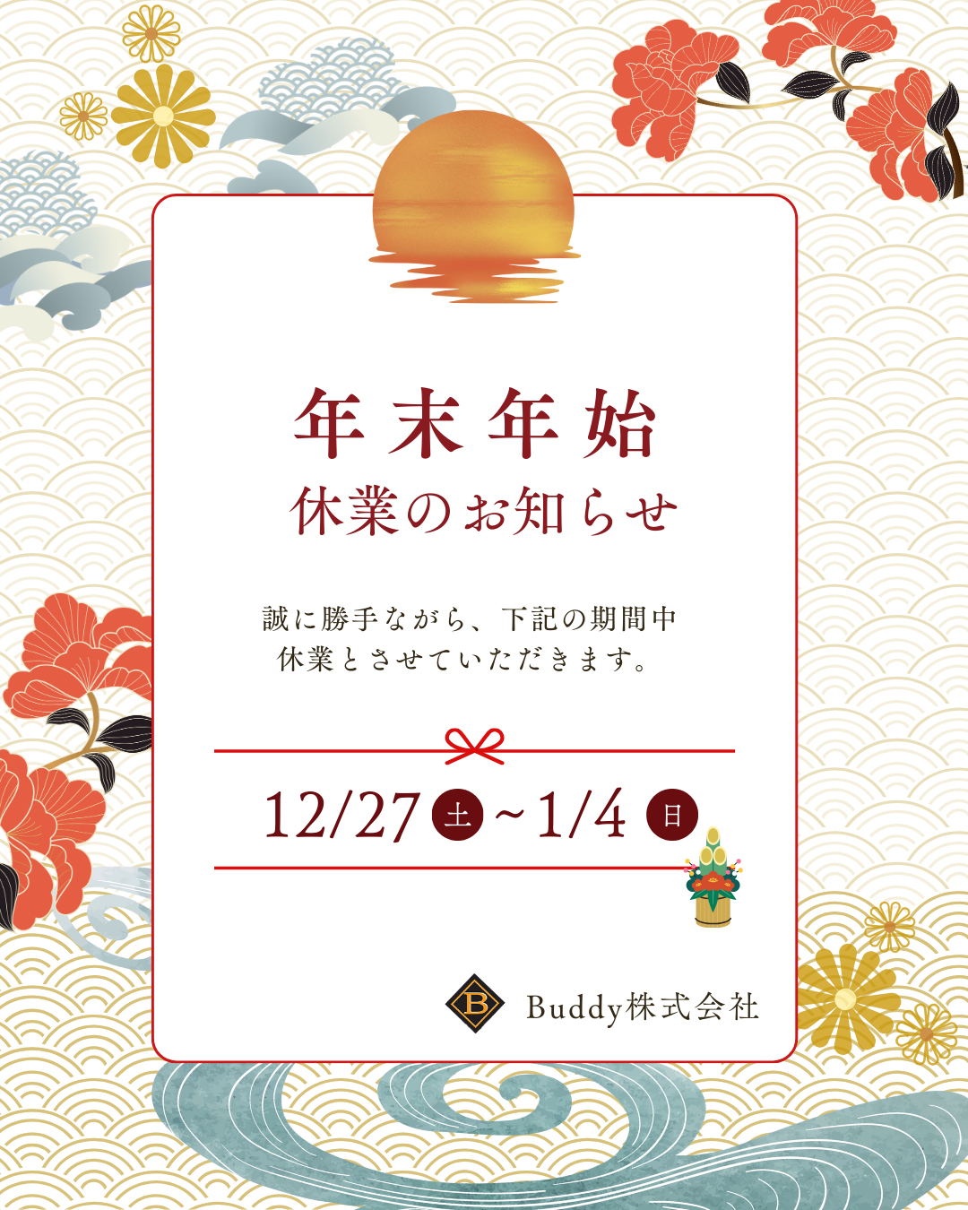 年末年始休業のお知らせ